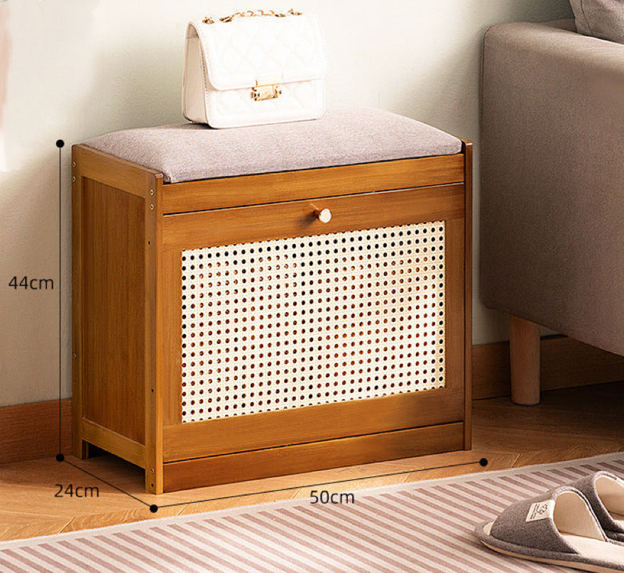 In the elegant transition from outside to inside, let the Home Entrance Porch Shoe Changing Stool with Integrated Shoe Cabinet be your sophisticated companion, seamlessly blending functionality with high-end design. Its modern and simple style, crafted from durable bamboo in a rich brown hue, transforms your entryway into a space of order and elegance. With a double-layer dump truck design and a net pattern for breathability, this stool not only offers a comfortable seat for changing shoes but also provides ample storage, making it an indispensable part of your home.